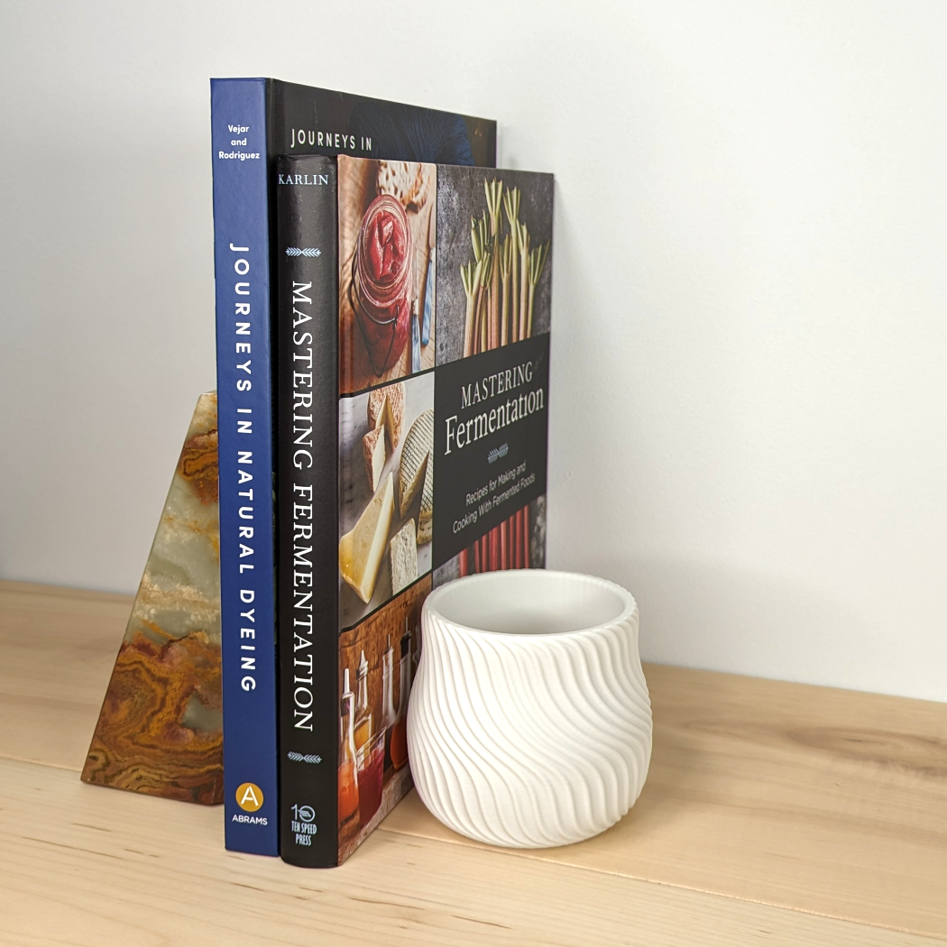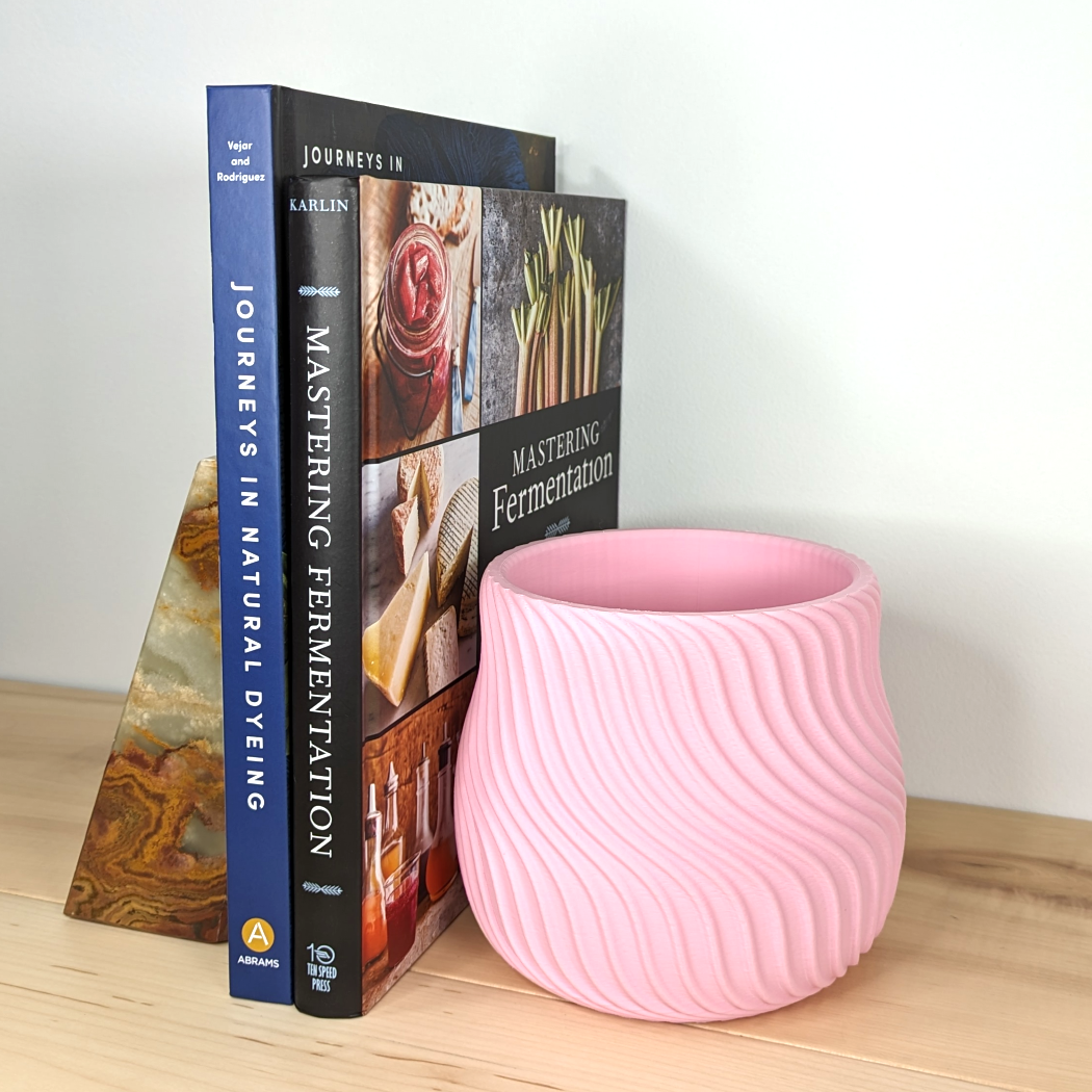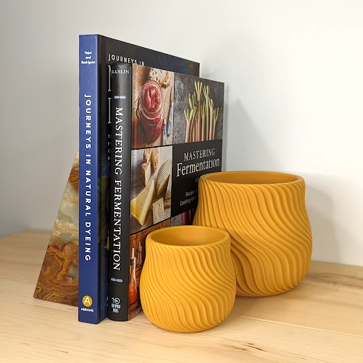 Our plant pots are 3d printed using a safe, biodegradable, plant-based, and durable PLA based plastic. PLA is made from eco-friendly renewable plant-based materials instead of oil-based plastics such as ABS. PLA is lightweight and durable, making it perfect for pairing with a macrame plant hanger. Please note that while PLA 3d printed products are durable, they are also heat sensitive (don’t put it in your oven!) and are not dishwasher-safe.